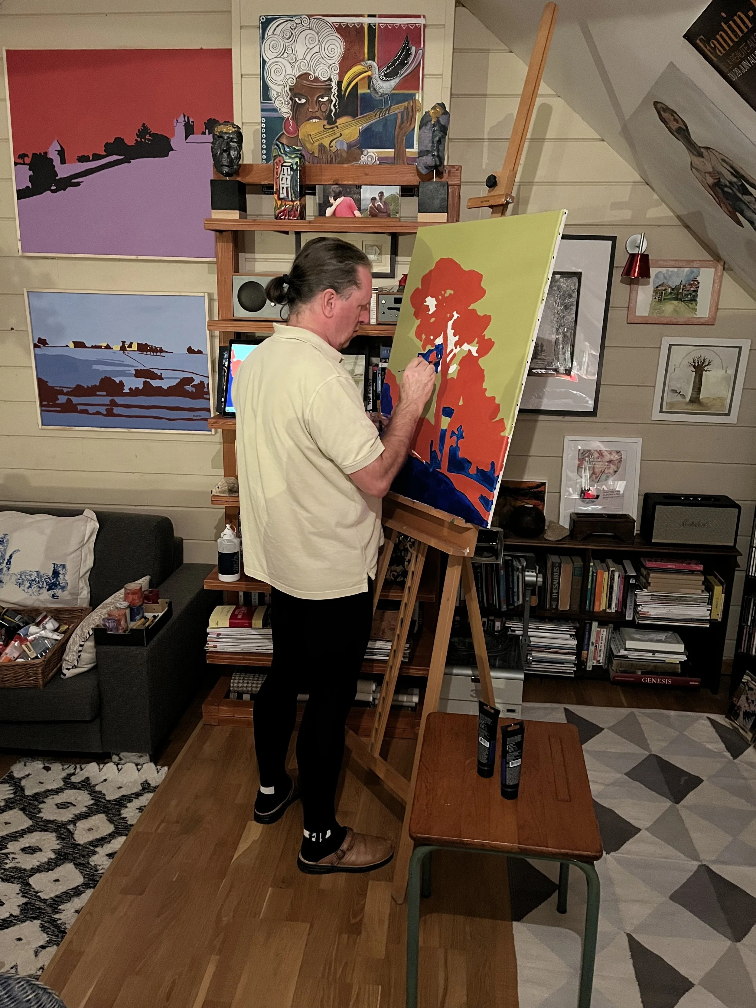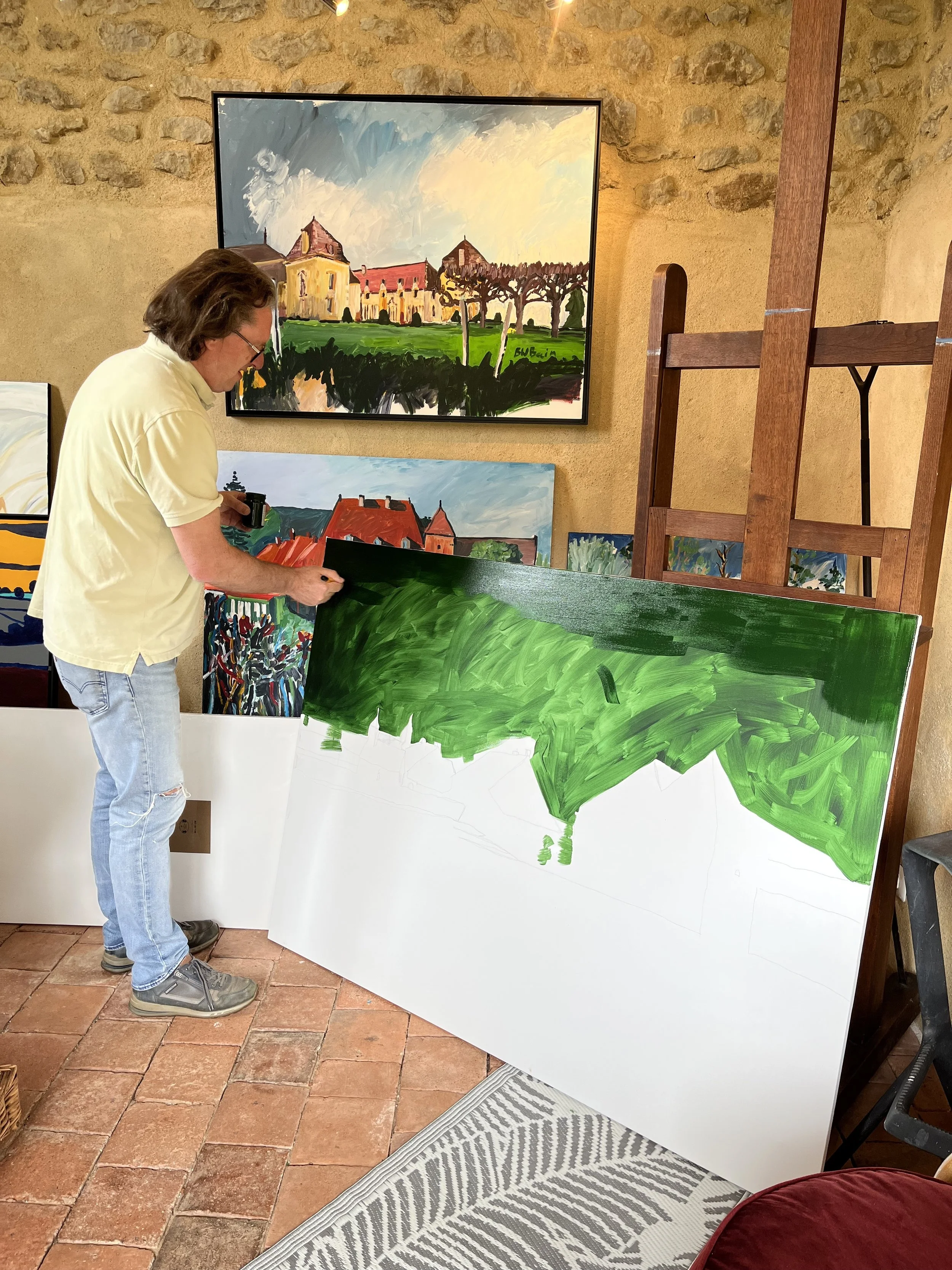 Barnaby’s artwork reflects both his design background and his deep connection to nature. Influenced by Turner and Nicolas de Staël, his acrylic paintings and digital works celebrate the geometry, rhythm, and color of the Charolais-Brionnais countryside. Whether painting ‘en plein air’ or sketching digitally with Brushes on his iPad, he strives to express the emotional vitality of local farm building architecture and landscapes, all through a vivid, Fauvist-inspired lens.